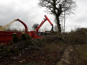 Vendredi 1 fu00e9vrier,u00a0 la du00e9chiqueteuse u00e0 grappins de la CUMA EcoValoris est venue sur l’exploitation agricole pour produire du bois plaquette pour le paillage des allu00e9es au niveau horticole et substituer en partie lu2019utilisation de paille pour les vaches laitiu00e8res (fond de stabulation).